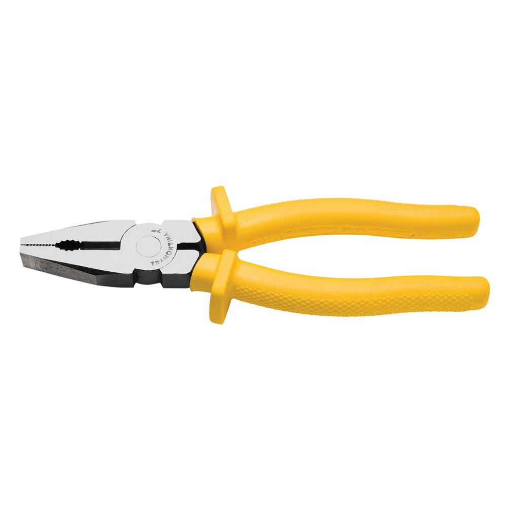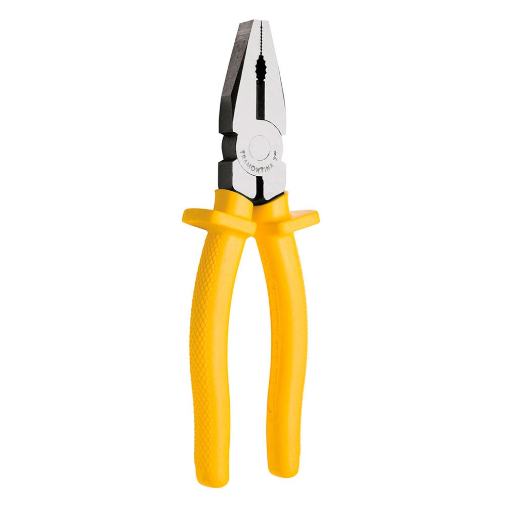 O Alicate Tramontina Universal Isolado é a opção perfeita para quem precisa de um alicate versátil e resistente. Com 8 polegadas e produzido em aço carbono especial temperado, possui cabo de plástico ergonômico amarelo que evita que os dedos escorreguem da ferramenta. O cabo também oferece proteção contra correntes elétricas de até 1.000V em corrente alternada. Desenvolvido para cortar, apertar e dobrar cabos e metais, vai ser o auxiliar perfeito para suas tarefas. O aço temperado é capaz de suportar alta tensão e força, sendo que maquinários pesados se utilizam desse tipo de metal mais resistente na sua confecção. Possui firmeza contra desgastes causados por abrasão, além de suportar grandes sobrecargas, vantagens dificilmente encontradas em outros aços. Produzido e testado conforme normas NBR 9699 e NR10.