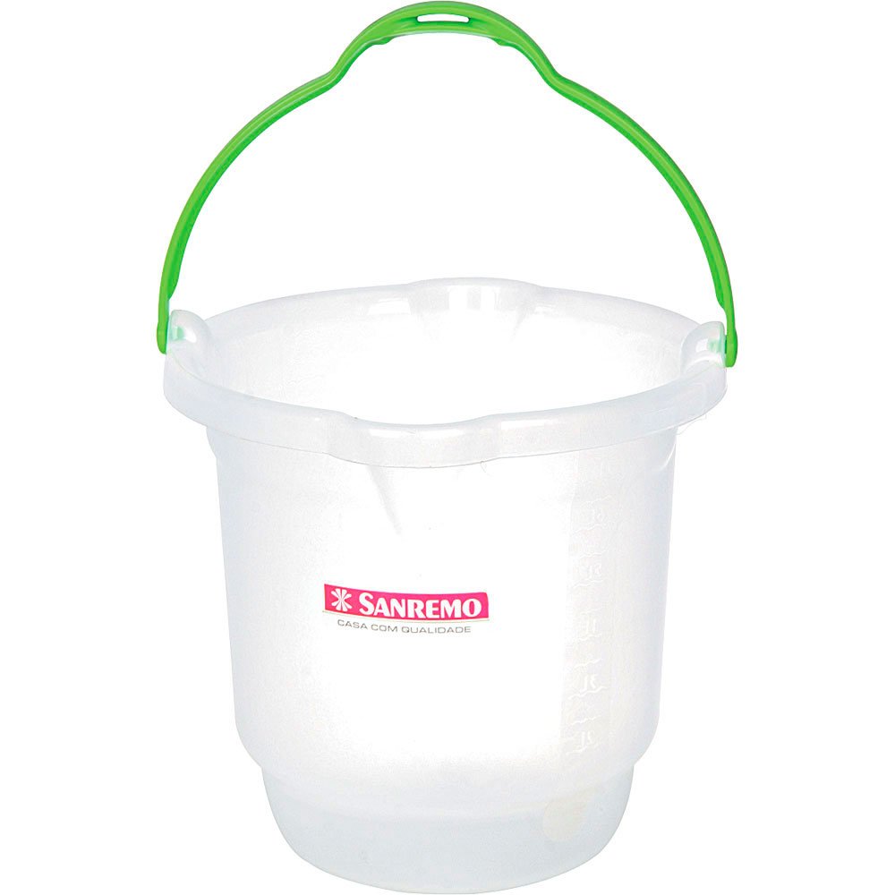 O Balde de Plástico da Sanremo foi desenvolvido para te auxiliar nas tarefas de limpeza do dia-a-dia. Ergonômico, possui alça larga e pegadores nas cavidades para facilitar o transporte e manuseio quando cheio. Conta com escala medidora para o controle da quantidade de água e produtos e bico direcionador para evitar molhar o chão na hora de esvaziá-lo. Incolor, tem capacidade máxima de 15 litros e é confeccionado em material super-resistente para durar por muito mais tempo e fundo com encaixe para os dedos que deixam mais simples a utilização.
