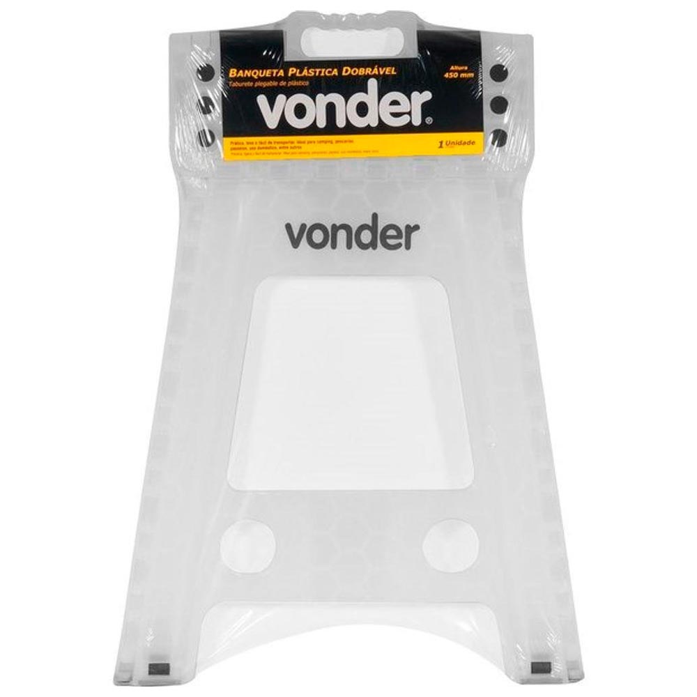 A Banqueta de Plástico Dobrável Vonder é prática e resistente, confeccionada em plástico ABS com dimensões de 41cmx33cm quando montada e capacidade de peso de até 150Kg. Modelo dobrável com alça para transporte (quando fechada) e antiderrapante.