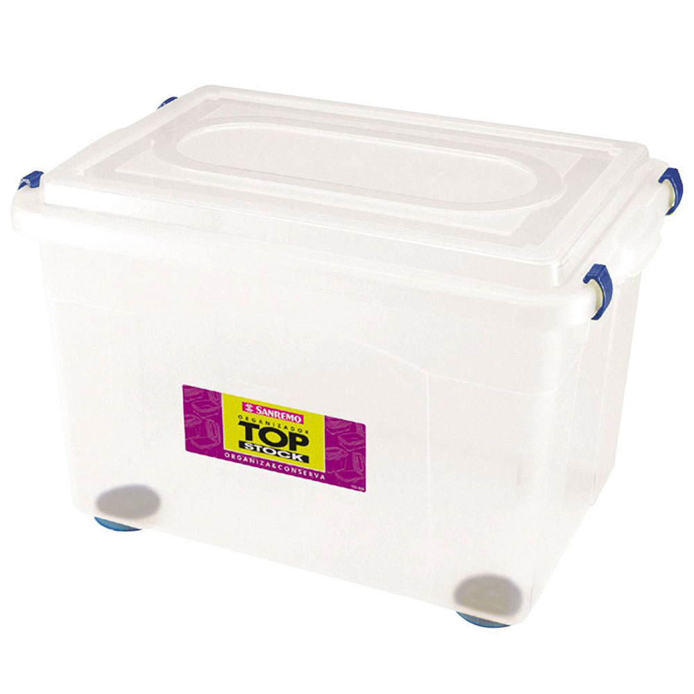 Deixe seu lar sempre em ordem com a Caixa Organizadora da Sanremo. Com corpo em plástico incolor, medindo 37 x 56,4 x 38,5cm e tem capacidade de 56, 1 litros, sendo ideal para deixar esmaltes, remédios e souvenirs sempre em ordem. Suas travas têm excelente fixação e impedem a tampa de se soltar enquanto a caixa é manuseada. Além disso, também pode ser usada para transportar grandes volumes e compras.
