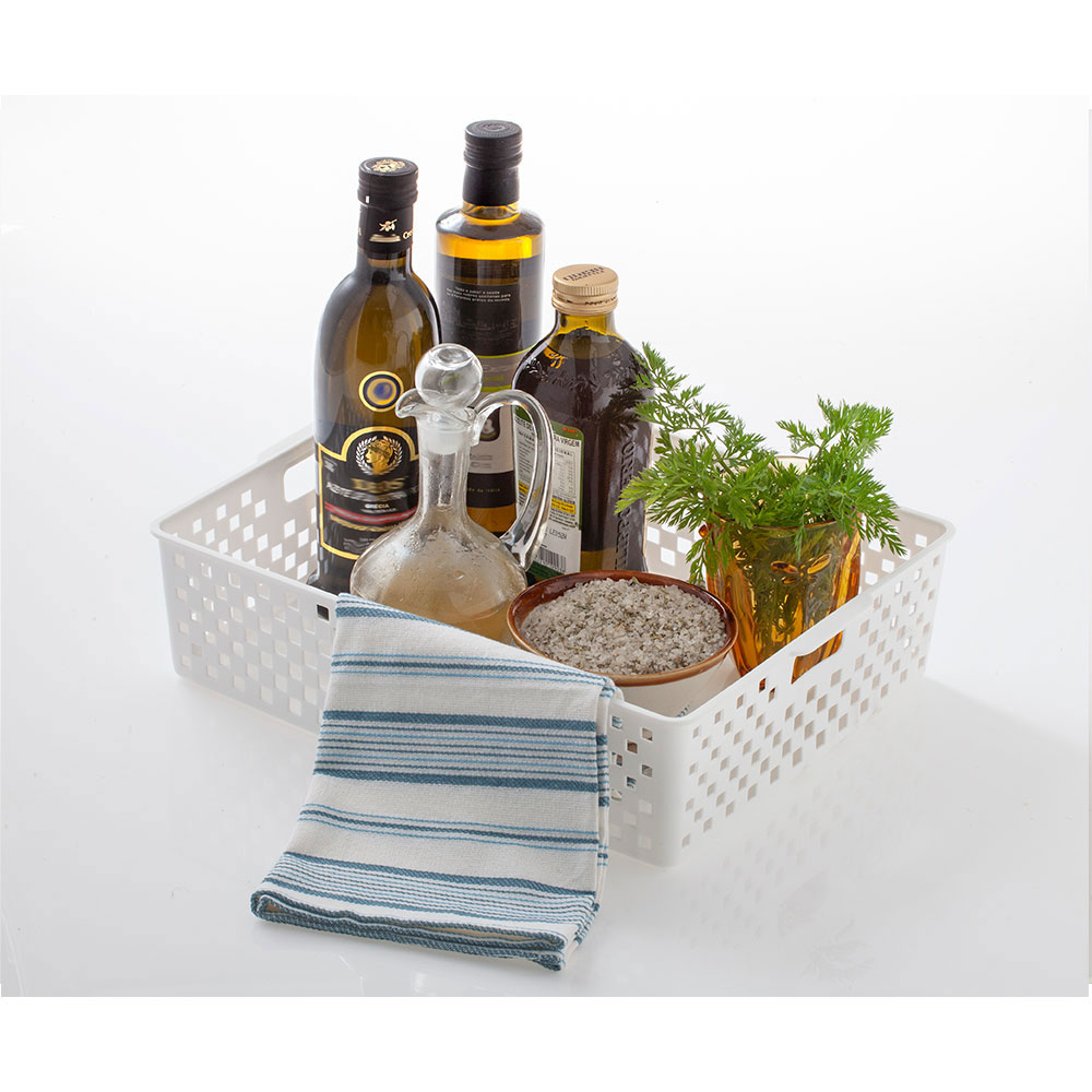 Use o Cesto Organizador de Plástico Branco da Paramount para arrumar seus acessórios na cozinha, banheiro, quarto e escritório da forma como desejar. É ideal para ter sempre à vista aquilo que você mais usa e para transportá-lo sem dificuldades. Mede 9x34x27cm.