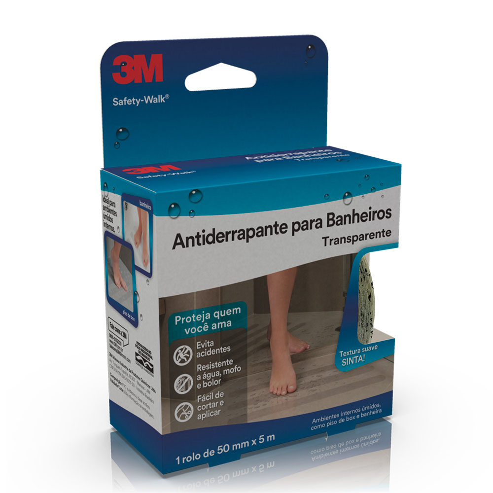 A Fita Adesiva Antiderrapante para Áreas Internas 3M da linha Safety-walk é feita para ser usada em banheiros, boxes ou banheiras prevenindo quedas em áreas úmidas internas. Adesivo de fácil instalação com 5 metros, na cor transparente, não acumula mofo ou bolor e tem textura suave para os pés.