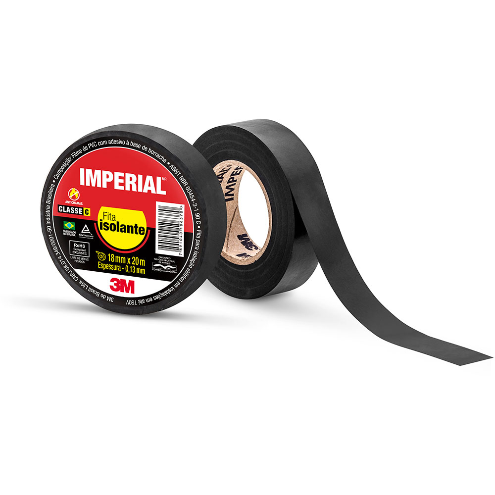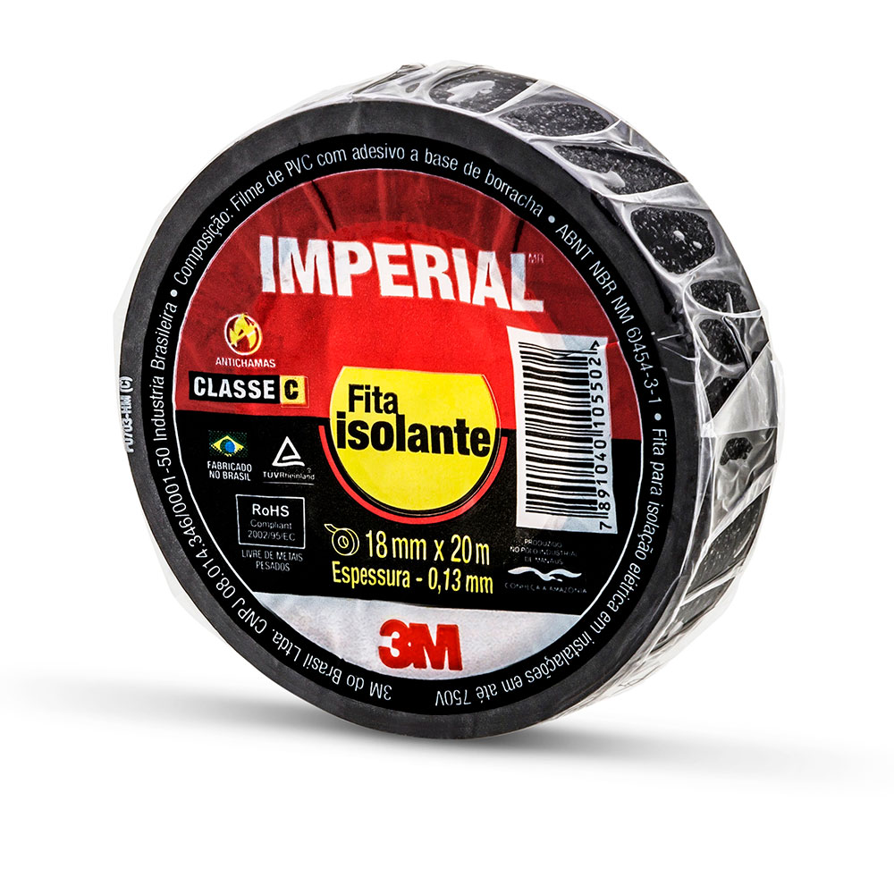 A Fita Isolante Imperial 3M é utilizada para pequenos reparos domésticos, conserto de eletrodomésticos, aparelhos eletrônicos, etc. Possui alta resistência, não resseca, é resistente a raios uv e tem excelente resistência elétrica com tensão máxima recomendada de 750v. Suas dimensões são de 18mm de largura por 20m de comprimento.