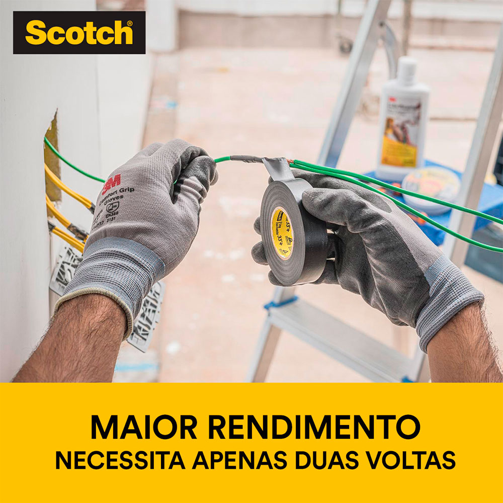 A Fita Isolante Scotch 3M tem alta performance de isolação e alta resistência mecânica na instalação elétrica. Faz a isolação de fios e cabos elétricos de até 750v, cobertura final em emendas e terminações, formando capa protetora altamente resistente a abrasão e atua como camada protetora contra raios ultravioleta, além de ser antichamas. Produzida em pvc na cor preto, com dimensões de 19mm de largura por 20m de comprimento.