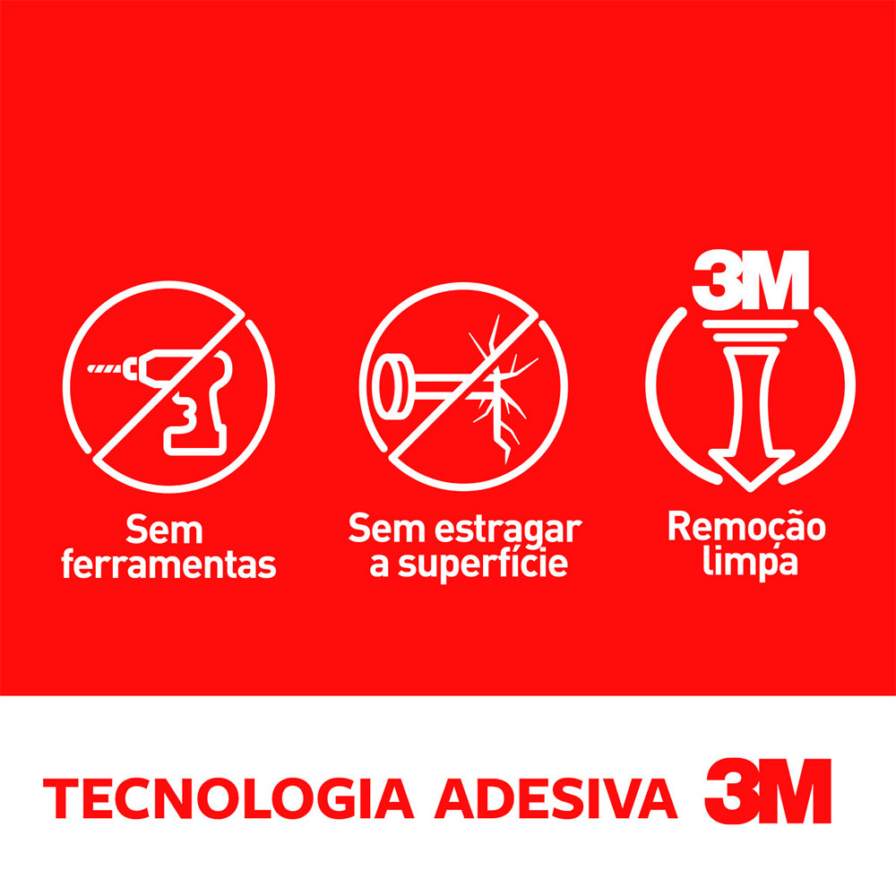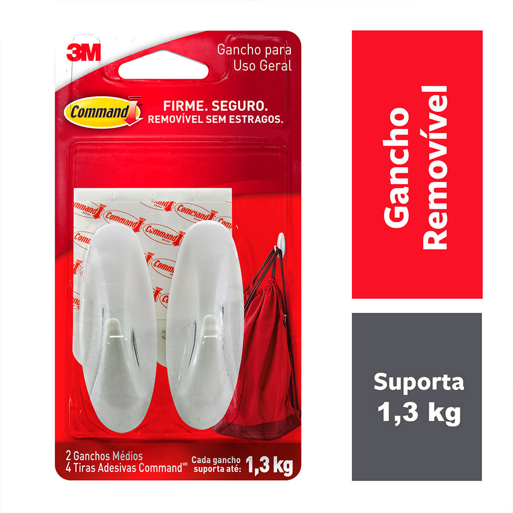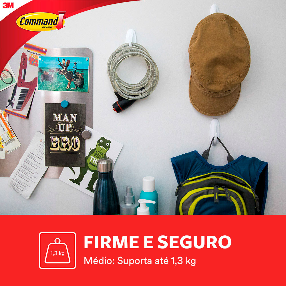 Chega de furar as paredes, portas e armários para pendurar suas bolsas, chapéus e acessórios. O gancho adesivo de plástico Command da 3M não danifica as superfícies, mantendo a tintura da sua parede e móveis intacta. Com tecnologia exclusiva de fixação, suporta até 1,3kg. Pendure o que você quiser e reutilize seu gancho adesivo em outro ambiente.
