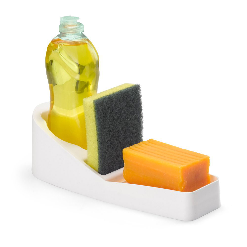 Com o Organizador de Pia para Sabão e Detergente em Plástico da Dasplast você economiza espaço e mantém sempre à mão os produtos que usa para higienizar as suas louças. Em um único objeto é possível guardar detergente, esponja e sabão em barra. Possui canaletas que evitam o contato da água com o sabão, evitando que derreta. Mantenha a sua bancada sempre organizada e limpa.