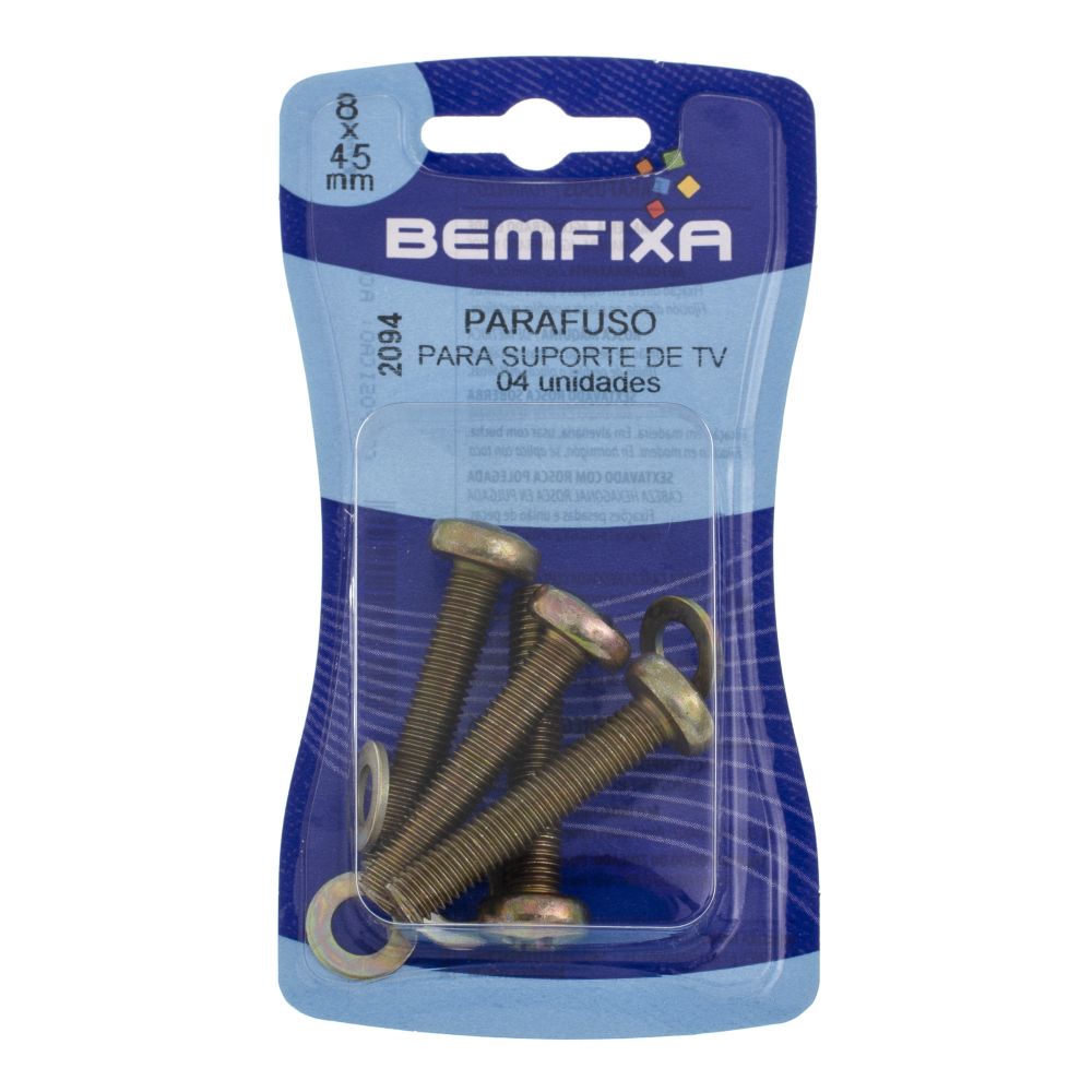 Parafuso para Suporte de TV Bemfixa M8 x 45mm – 4 Unidades