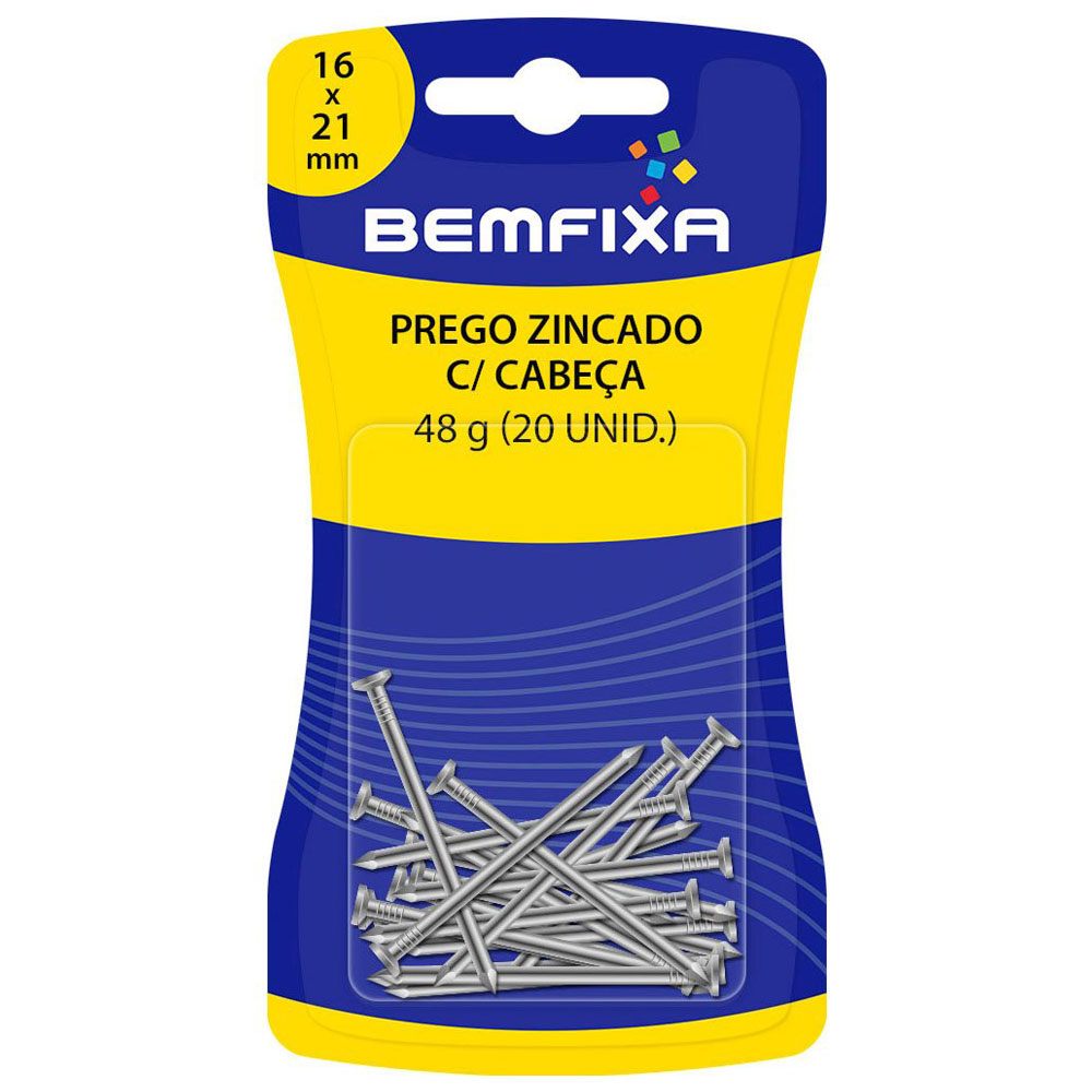 Os Pregos Zincados com Cabeça Bemfixa são resistêntes, práticos e desenvolvidos em aço. São indicados para utilização em madeiras e superfícies maleáveis, garantindo qualidade e inovação nos trabalhos gerais de carpintaria. Pregos com dimensões de 16 x 21 mm na cor prata, contendo 20 unidades.