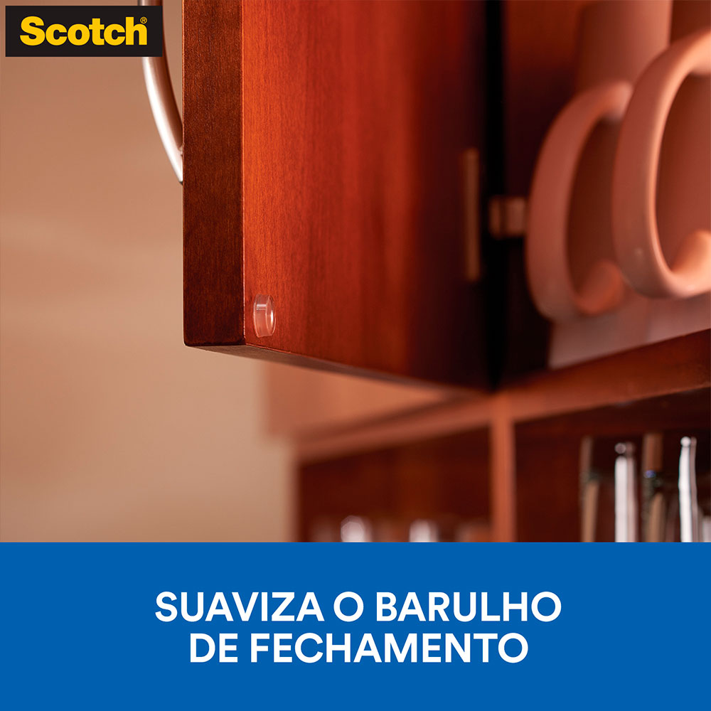 Aplique o protetor anti-impacto redondo Scotch 3M atrás de portas, em paredes, maçanetas, tampas, gavetas e outros lugares. Feito de PVC, tem tamanho PP, é ideal para proteger superfícies de impactos e também pode ser fixado em tampos de mesa, eletrodomésticos, computadores e objetos em geral. Cartela com 28 unidades.