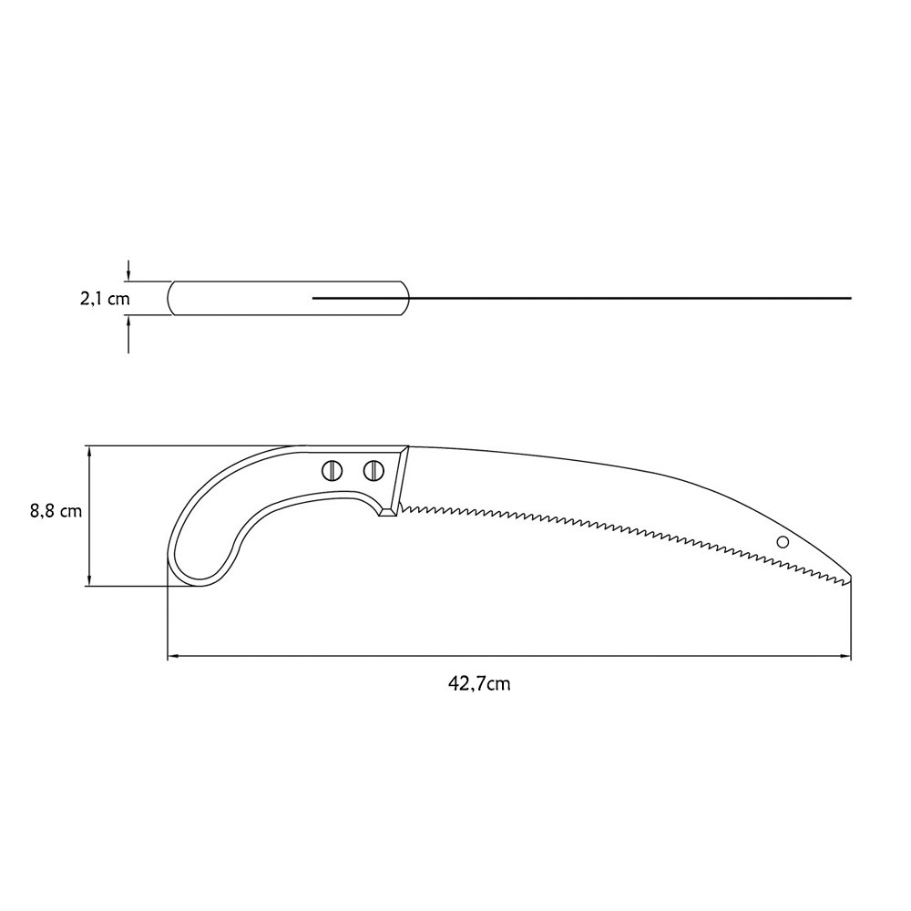 O Serrote de Poda Utility Tramontina é próprio para poda em jardins e em tarefas de camping, corte de galhos em madeiras úmidas, secas e verdes. Possui cabo de madeira com formato ergonômico, proporcionando maior conforto durante o uso e lâmina em aço carbono temperado com camada de verniz anticorrosiva, além de ser lixado com dentes travados. São 5 dentes por polegada e tem proteção plástica para os dentes.