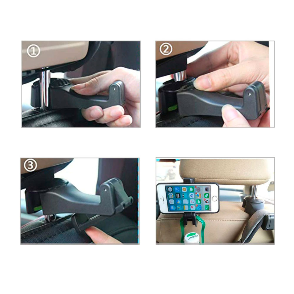 O suporte veicular é ideal para ser utilizado no encosto de cabeça do assento. Multifuncional, é um suporte de celular para que o passageiro do banco de trás possa assistir a vídeos sem ter o telefone em mãos, de maneira muito prática. Também atua como gancho para o assento, convertendo o enconsto de cabeça em um espaço de armazenagem prático e conveniente para pendurar bolsas, sacolas, mochilas e muito mais.