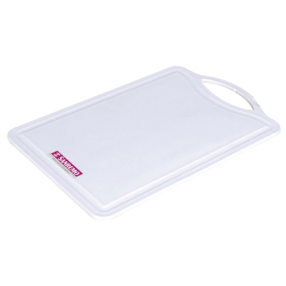 A Tábua de Corte Retangular Sanremo é um item indispensável na sua cozinha, ideal no auxílio de cortes de todos os tipos de carnes, legumes, pães e etc. Produzida em plástico branco com alça para fácilitar o manuseio, é a opção perfeita para ter apoio nas suas receitas e para não riscar sua pia. Simples de ser lavada, podendo ir na lava louças.