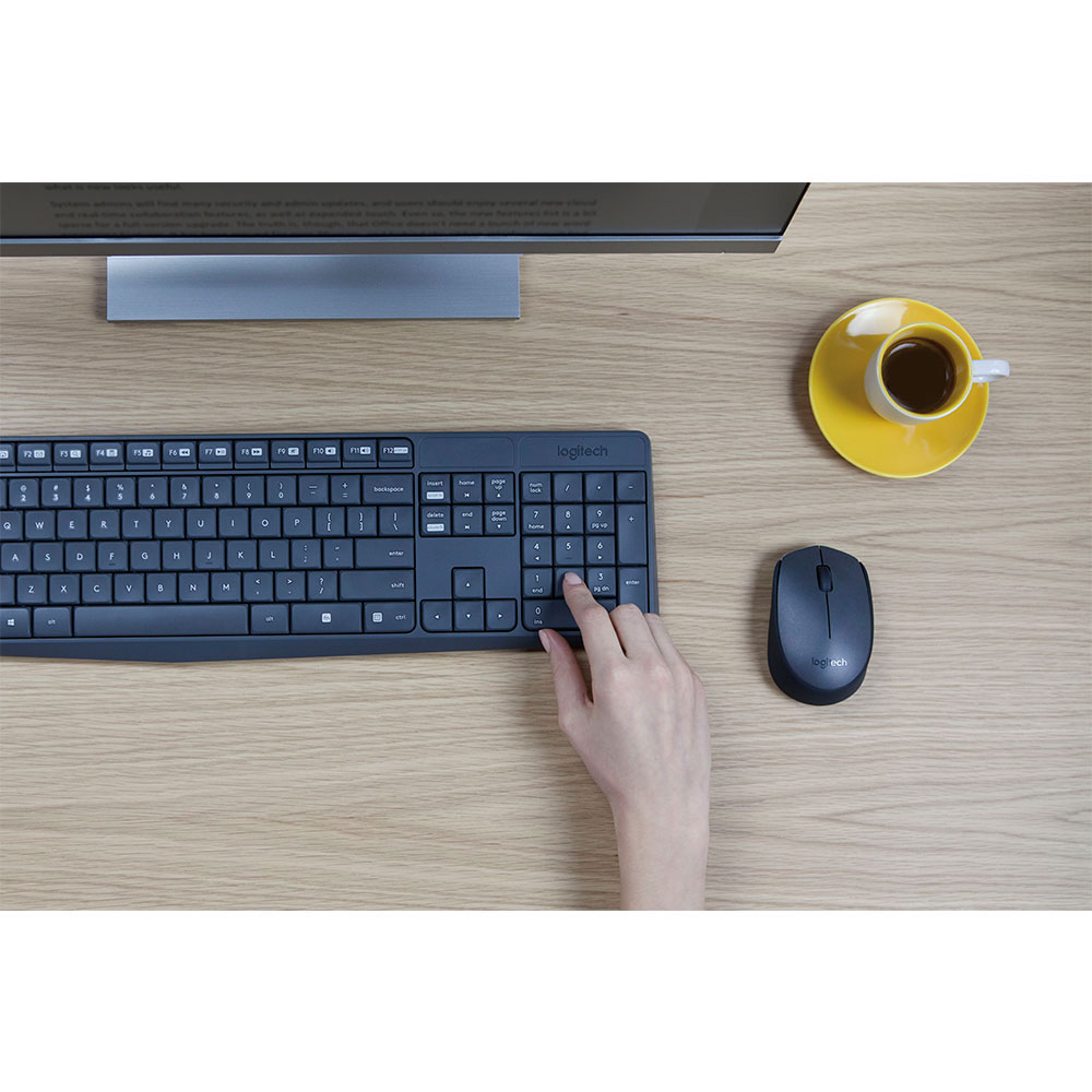 Teclado e Mouse sem Fio Wireless MK235 Preto Logitech, produzidos em material durável com suportes móveis e design a prova de derramamentos. O teclado possui tratamento antidesgaste nas teclas para nunca perder o desenho das letras e teclas especiais, 15 teclas de função acessíveis com a tecla ?fn?, além de altura ajustável e teclas de perfil baixo, super silenciosas. Para utilizar, basta conectar o pequeno receptor nano usb e aproveitar uma conexão de qualidade e sem atrasos. Seu teclado e mouse sem fio permanecem conectados em um raio de até 10 metros.