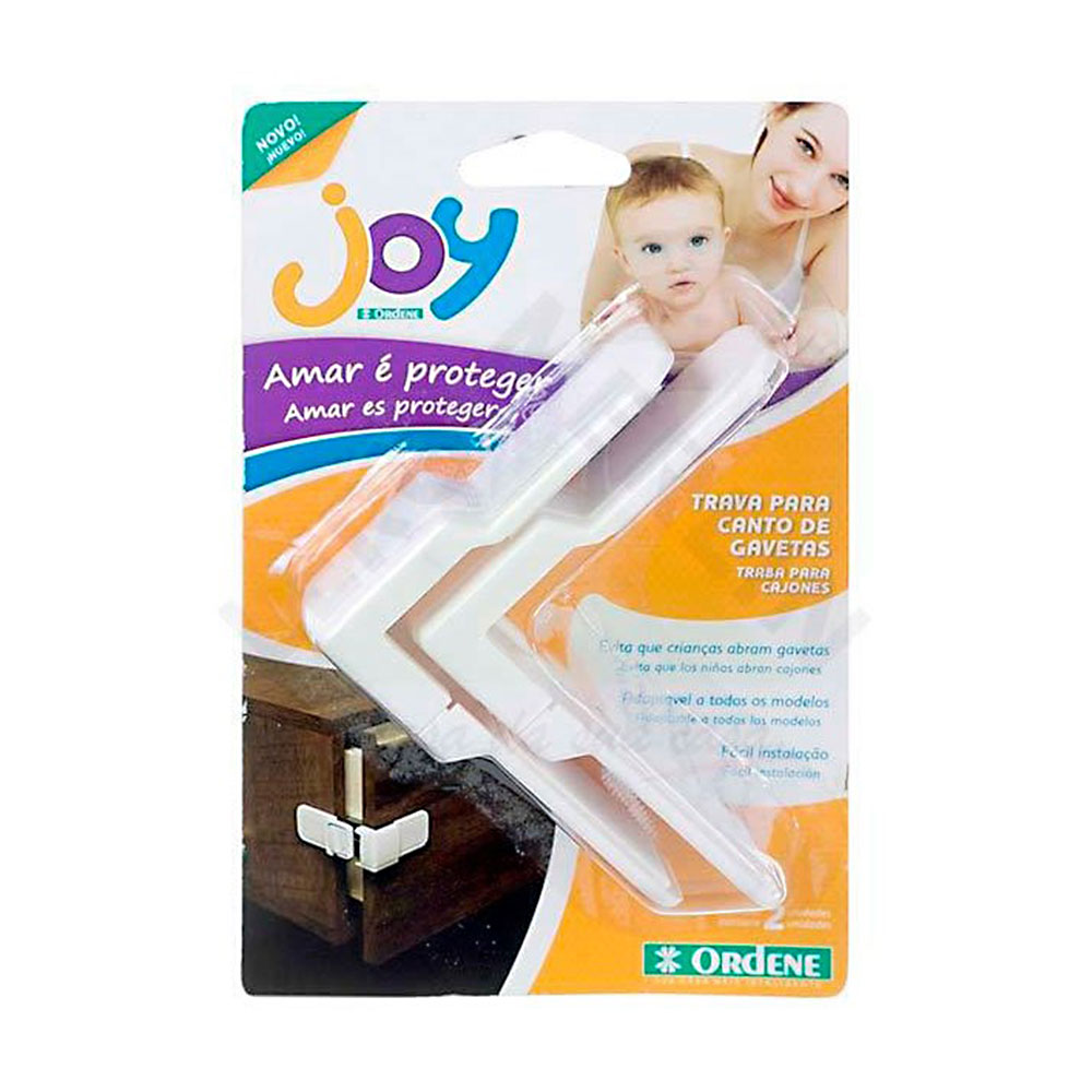 A Trava para Canto de Gavetas na cor branca Joy Ordene, é feita para proteger os mais diversos ambientes, sendo ideal para ser usada em quinas e cantos de gavetas. Contém duas travas na cor branca, produzidas em material resistente com aproximadamente 3,4 x 8,7cm. Fácil de aplicar.